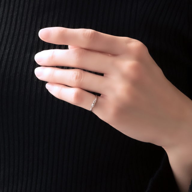 中央にひときわ輝く5石のダイヤモンドが配置されており、優雅な雰囲気をプラスしてくれます。