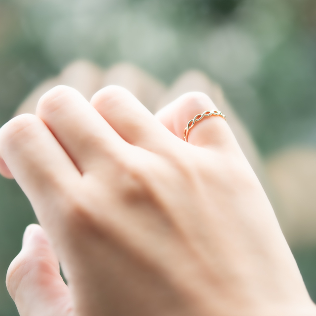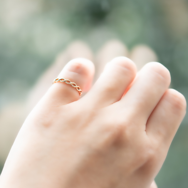 お手持ちのリングもプラスしてコーディネートも楽しめるシンプルながらも万能なリングです。