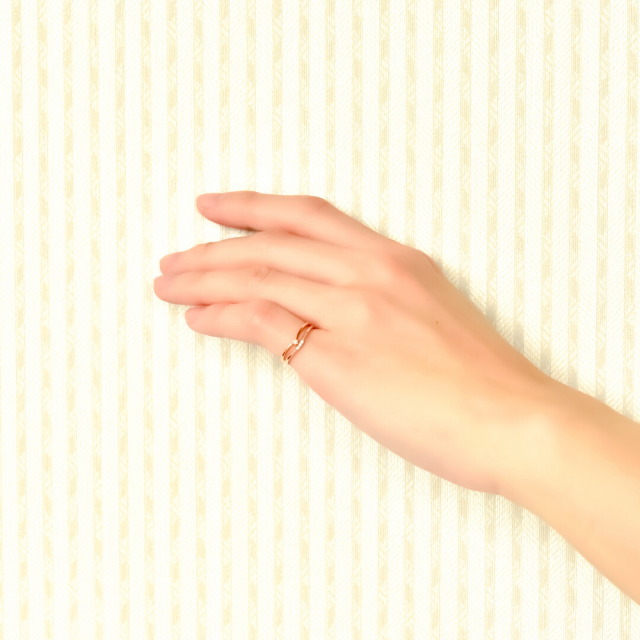 肌なじみの良いピンクゴールドでつくられた、 指を細く長くみせてくれるV字デザインのピンキーリング。