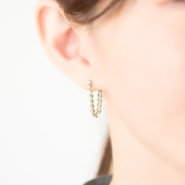 国内製造でシルバー925にコーティングを施し、ステンレスにはない繊細さ、シルバーアクセサリー特有の輝きと光沢感が目を引くデザインピアス。