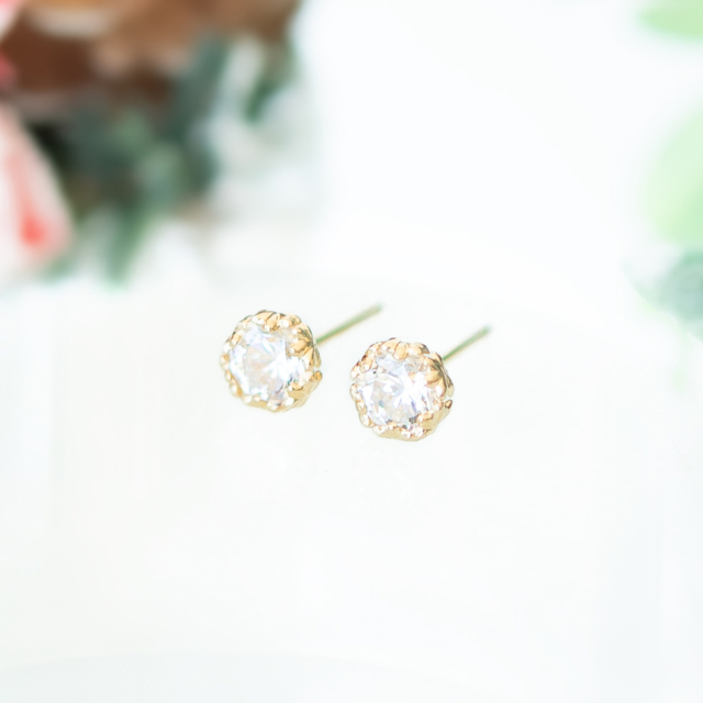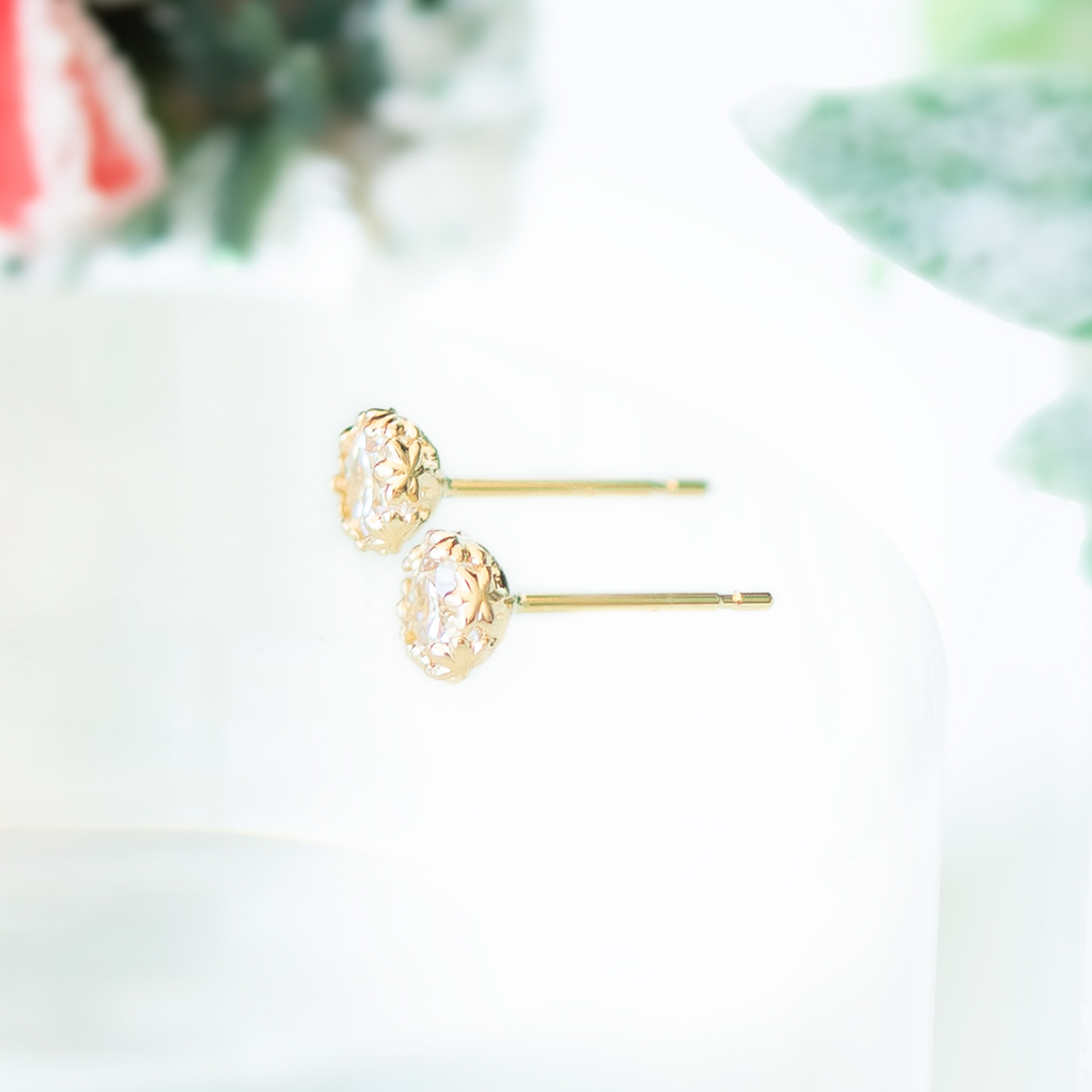 繊細なお花の細工を施した爪でスーパーキュービックジルコニアを優しく包みこんだピアス。