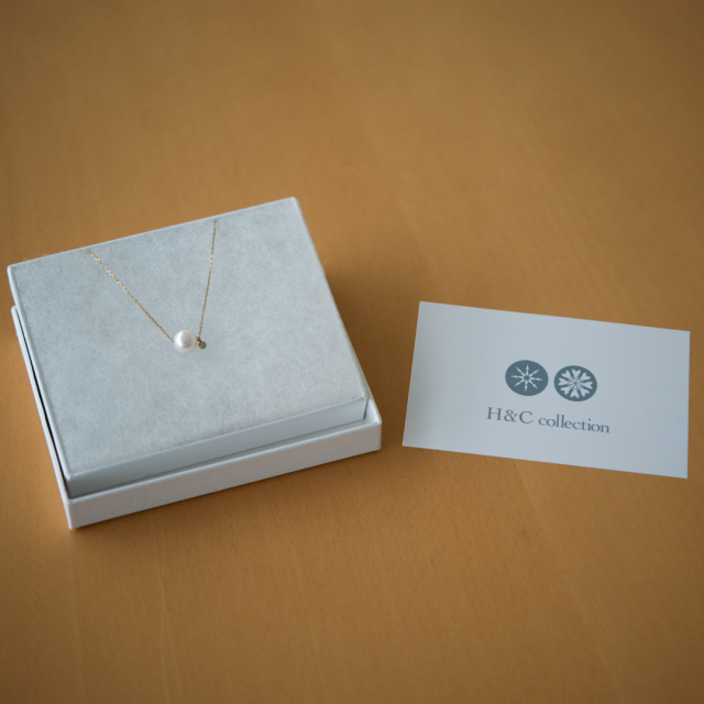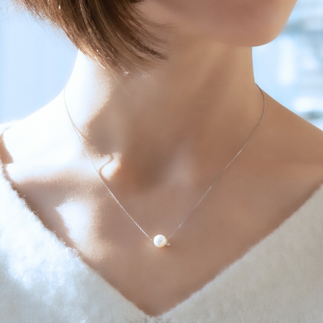本真珠の本物の輝きと、光を受けながら、やわらかく反射するような、しっとりとした優しい光沢が魅力のアコヤパールは胸元で高貴な光を放ちます。