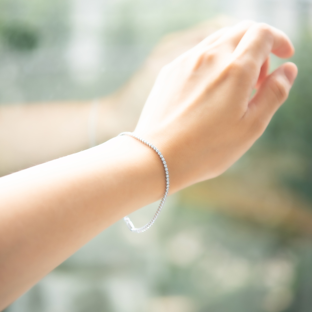 連なるキュービックジルコニアが上品に煌めくブレスレット。