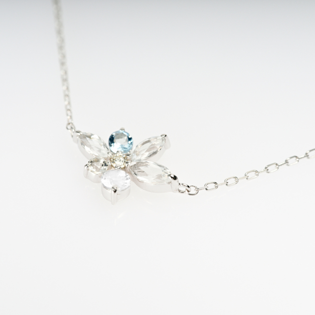 | 【素材】 | K10ホワイトゴールド/ホワイトトパーズ/ムーンストーン/アクアマリン/ダイヤモンド0.01ct |