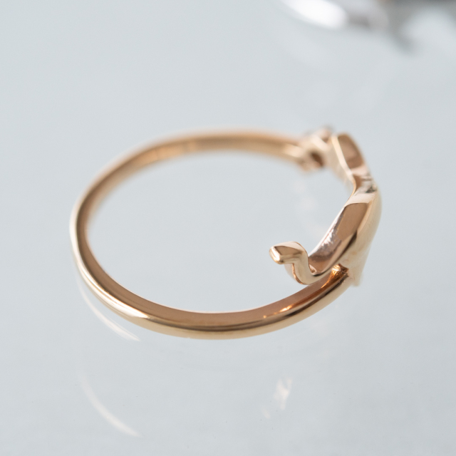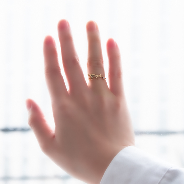 今にも猫ちゃんが動き出しそうな躍動感のある、猫好きにはたまらないデザインリング。
