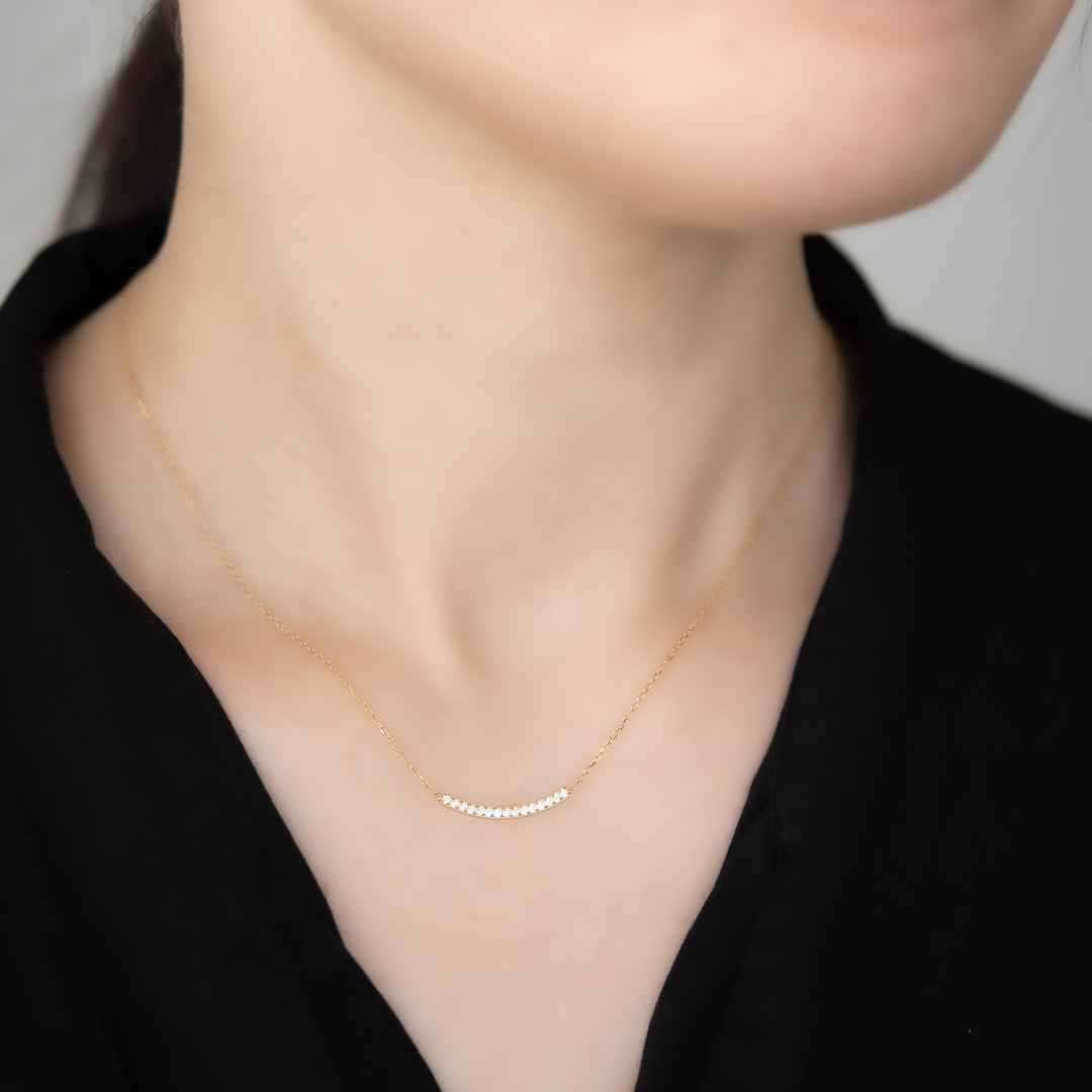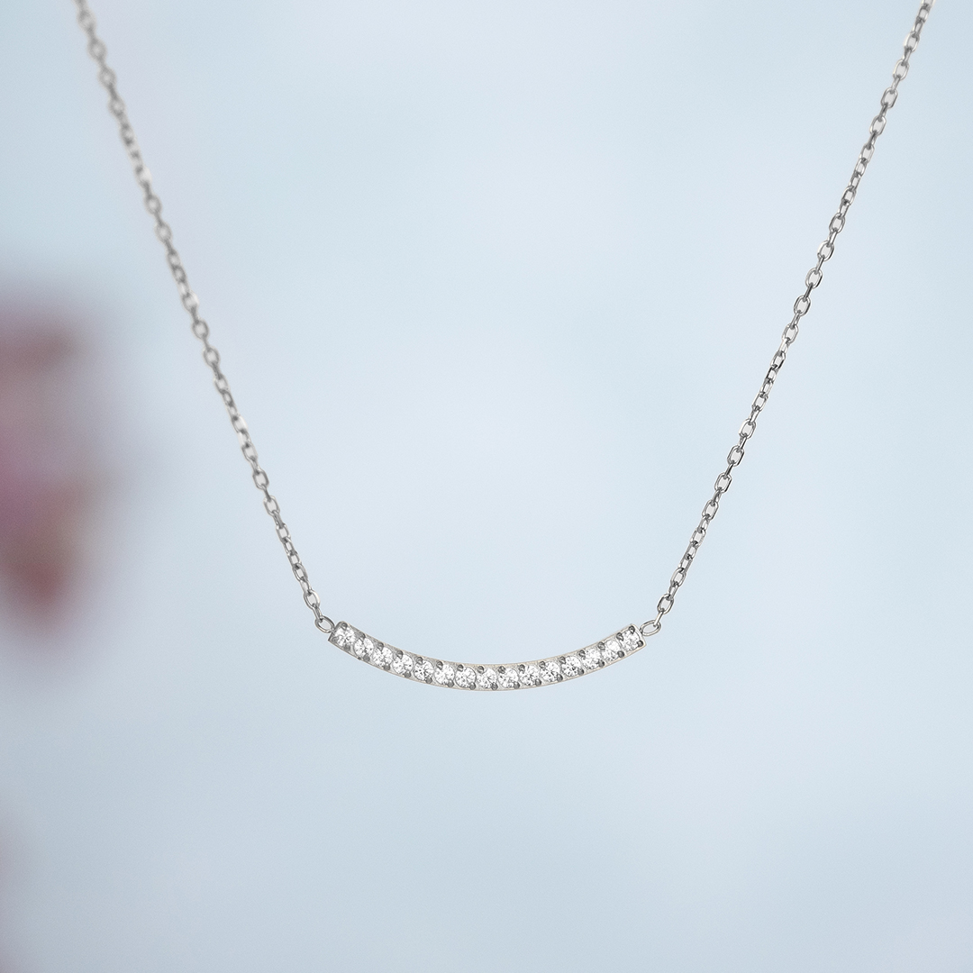 緩やかなカーブラインにキュービックジルコニアをあしらった、上品なネックレス。