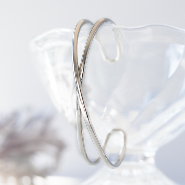永遠や無限を表す∞(インフィニティ)の流れるようなクロスラインが美しいバングル。