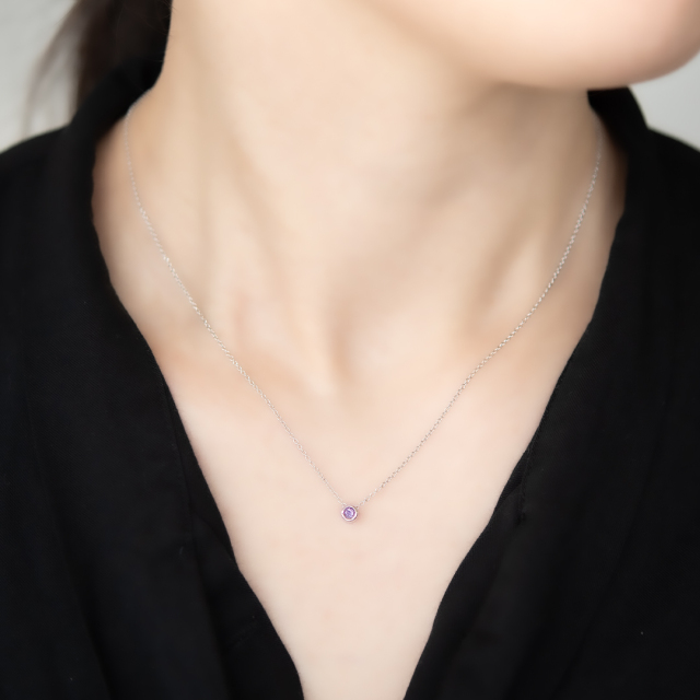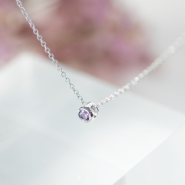 柔らかな紫の色合いと透明感が美しい、アメジストのネックレス。