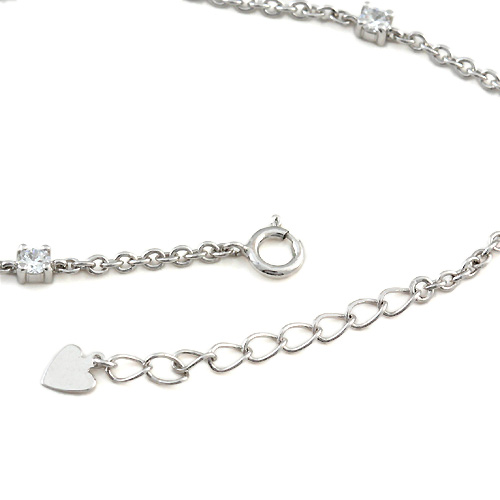 ロジウムコーティングを施したシルバー素材に、キュービックジルコニアをバランスよく配置し、きらきらと腕周りを美しく演出します。