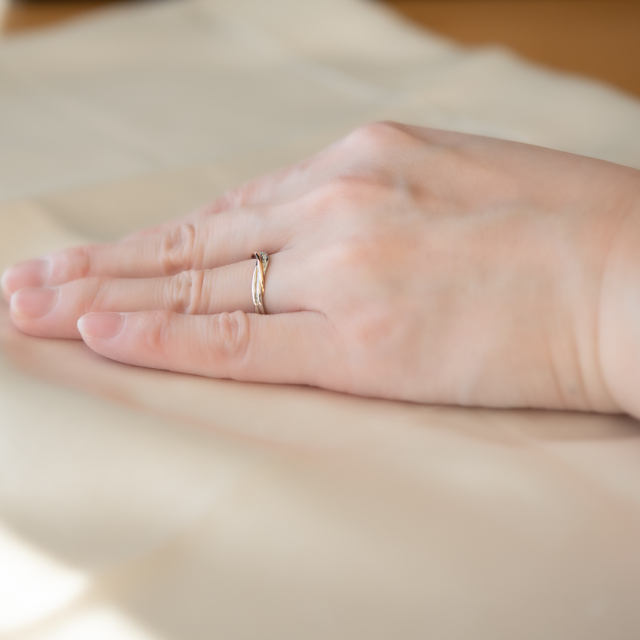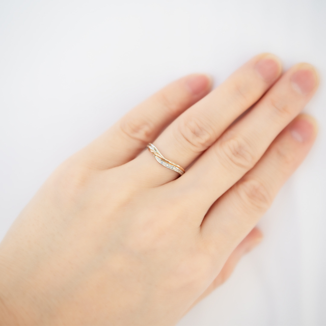 プラチナにピンクゴールドを合わせた人気のコンビデザイン。
