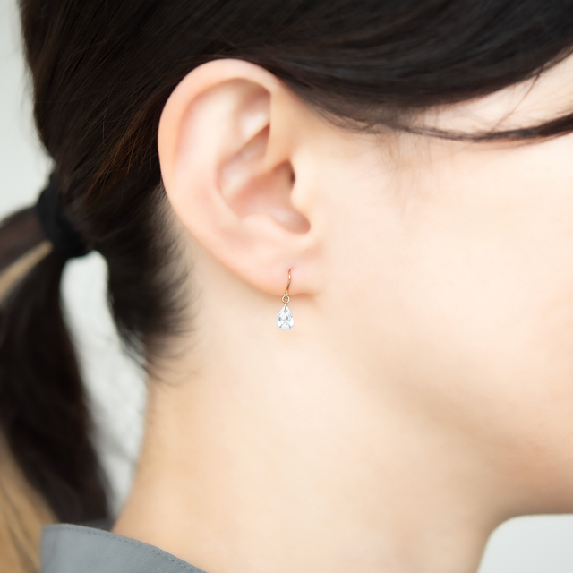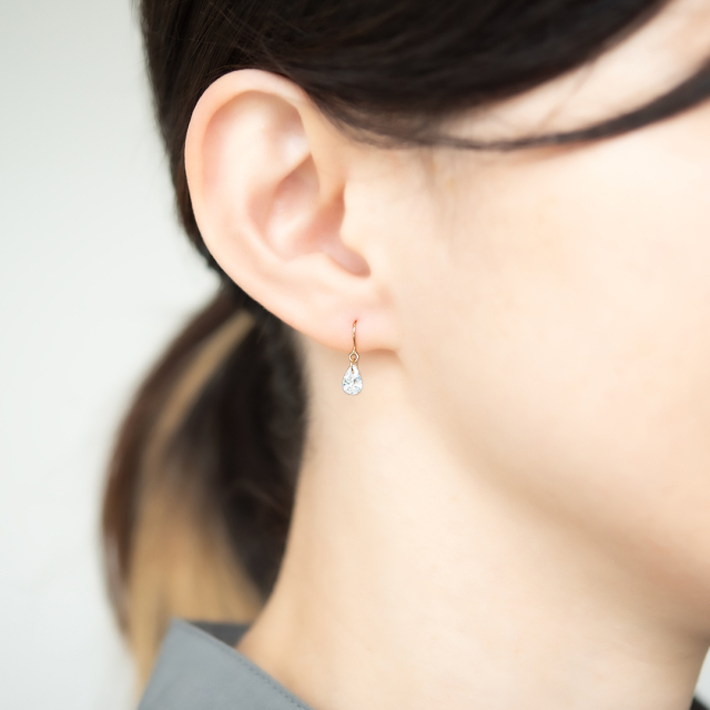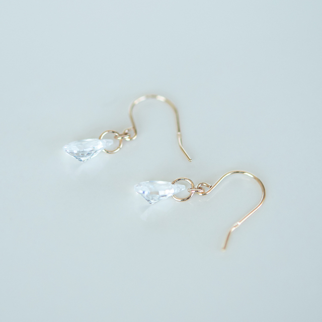 キラキラ輝く雫型のキュービックが、ふとした仕草でふるふる揺れて煌めくかわいらしいピアス。