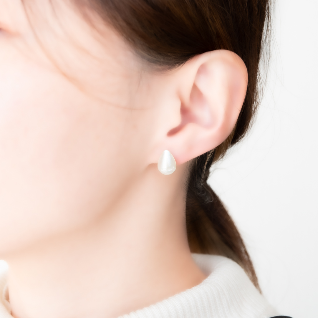 耳元に雫型の天然石が寄り添うシンプルなピアス。