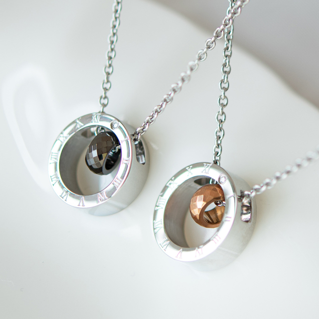 時計の文字盤を思わせる12時の位置に、永遠の絆を意味するダイヤモンドを埋め込んだモチーフのネックレス。