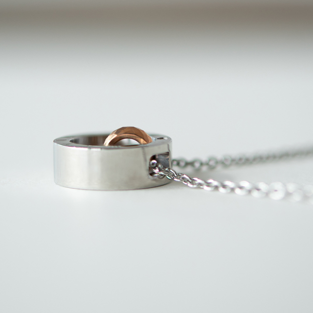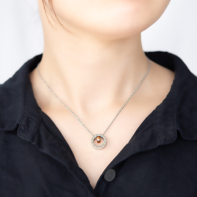 時計の文字盤を思わせる12時の位置に、永遠の絆を意味するダイヤモンドを埋め込んだモチーフのネックレス。