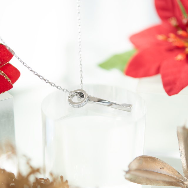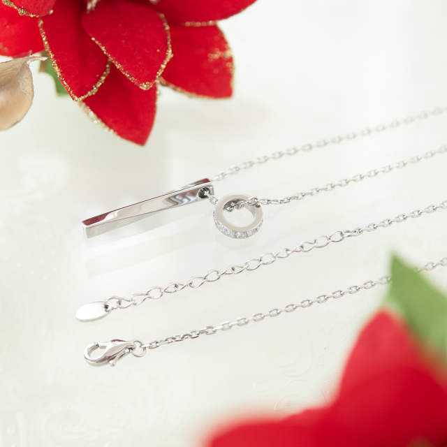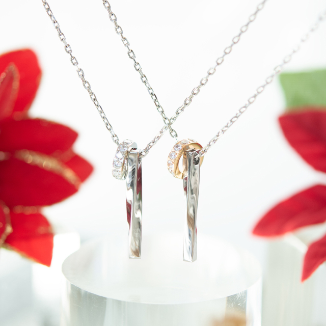 曲線の美しいスティックと、キュービックジルコニアが煌めくサークルチャームが寄り添うロマンチックなネックレス。