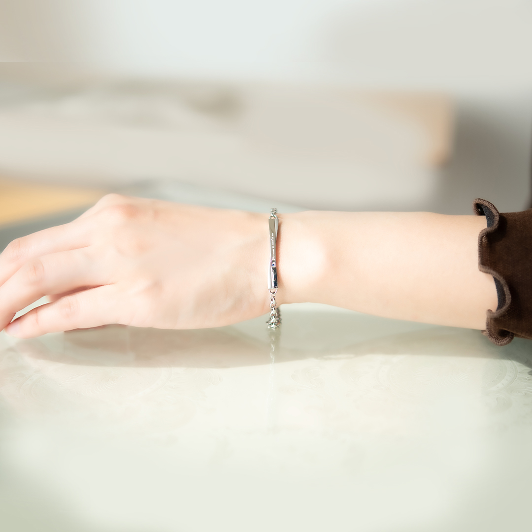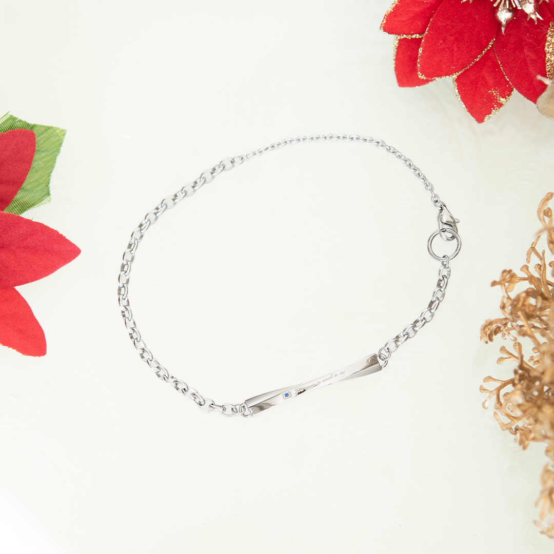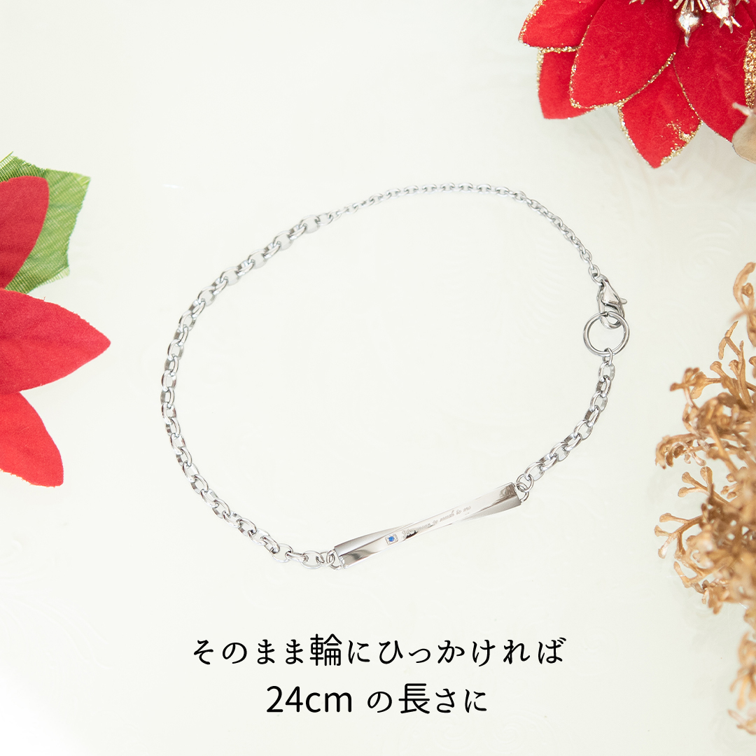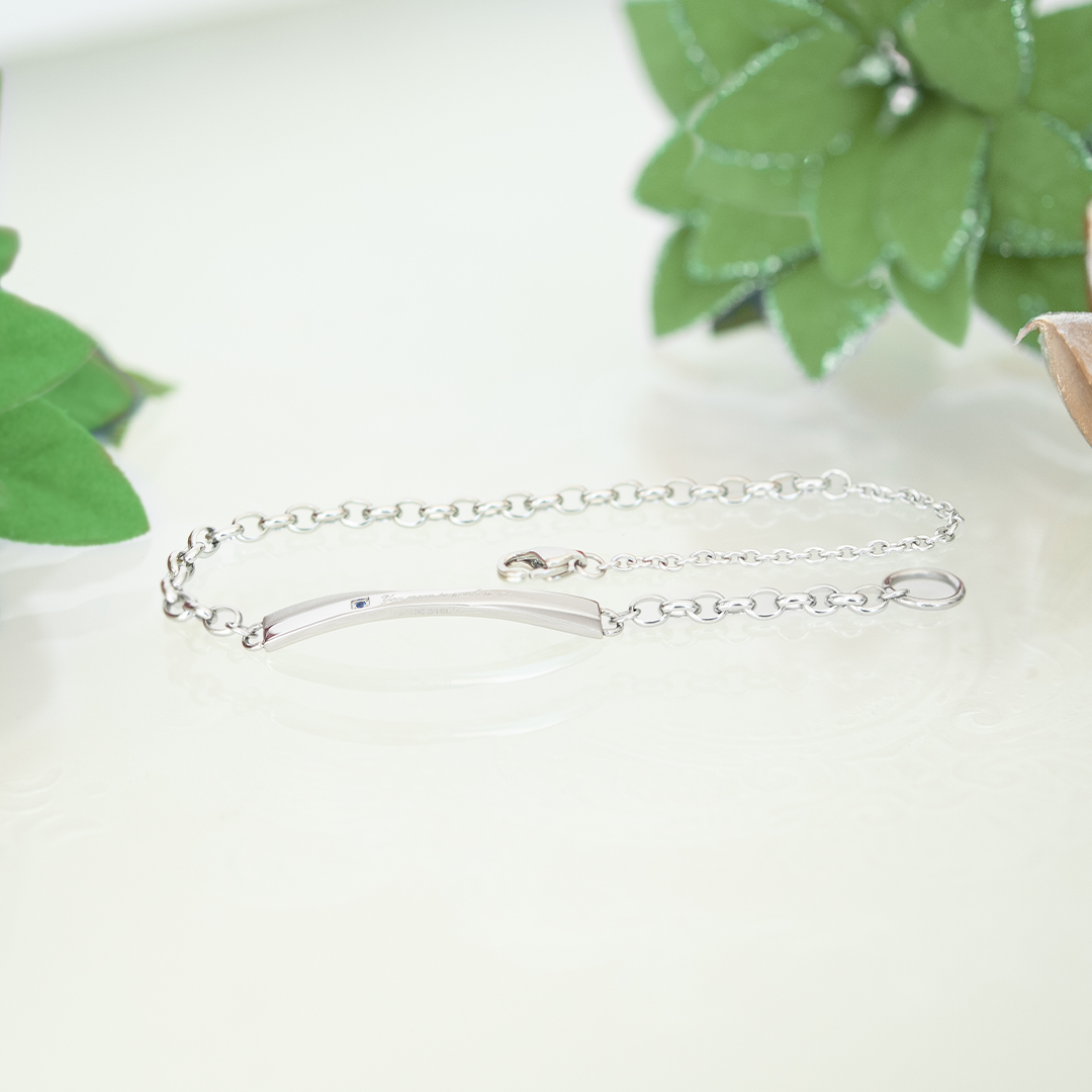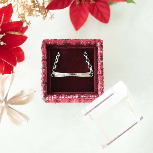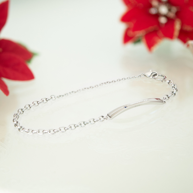 シンプルなデザインのプレートにブルーキュービックジルコニアとさりげなくメッセージを添えて。