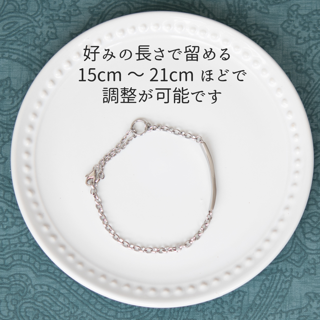 | 【サイズ】 | 全長:24.5cm/プレート:W3.5cm×H5.0mm ※約15~24cmで調整可 |