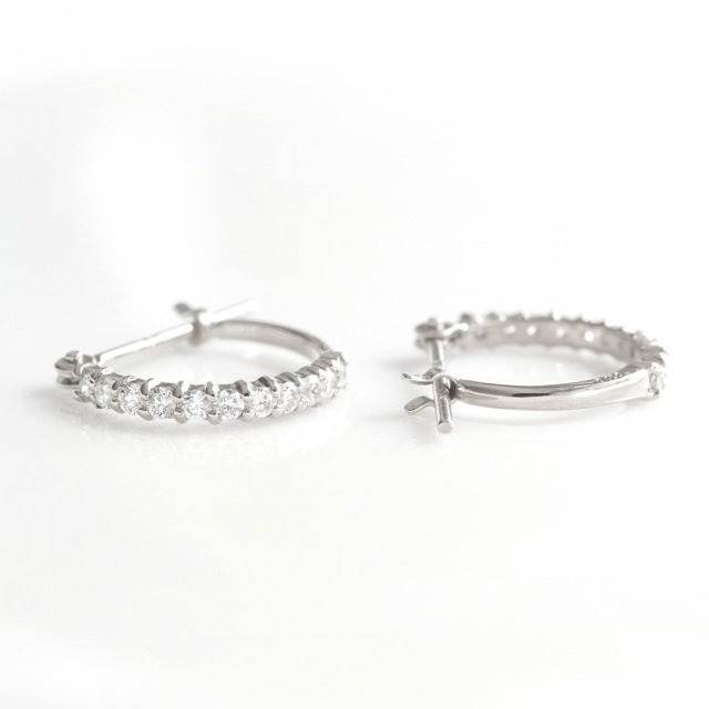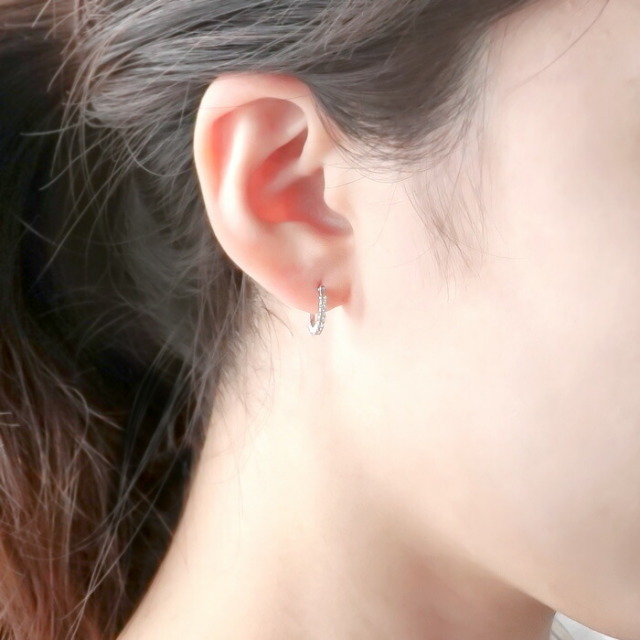 小さめで軽い着け心地なのに存在感のある輝きで、女性らしい印象に。