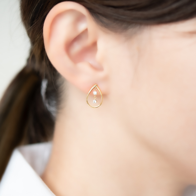 しずくをえがくモチーフの内面から輝きを放つ2粒の煌めくダイヤモンド。