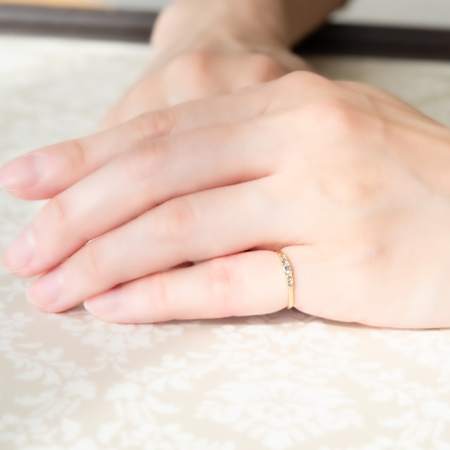 18金とダイヤモンド合計0.15ctの2種類の確かな品質の素材を組み合わせた贅沢で上品さが際立つピンキーリング。