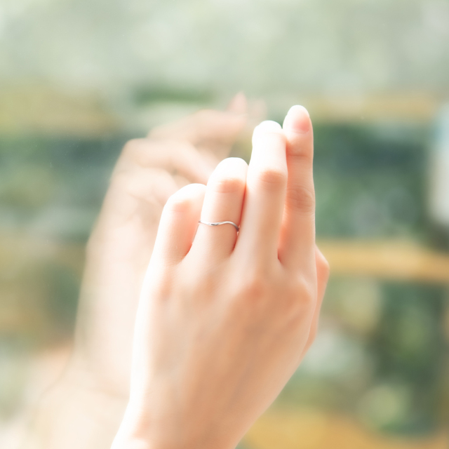 ひねりをきかせた美しい曲線が指に優しく寄り添うリング。