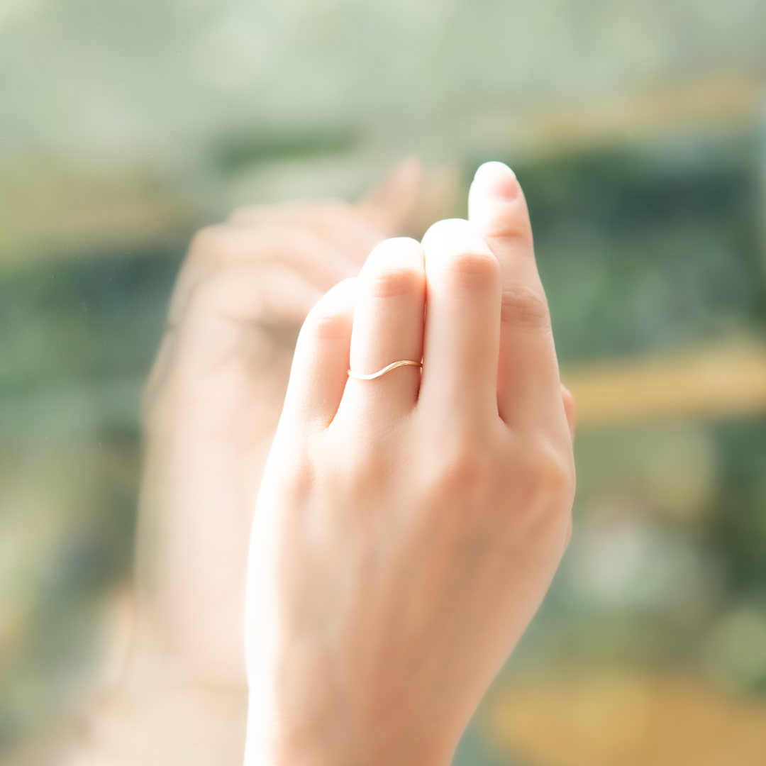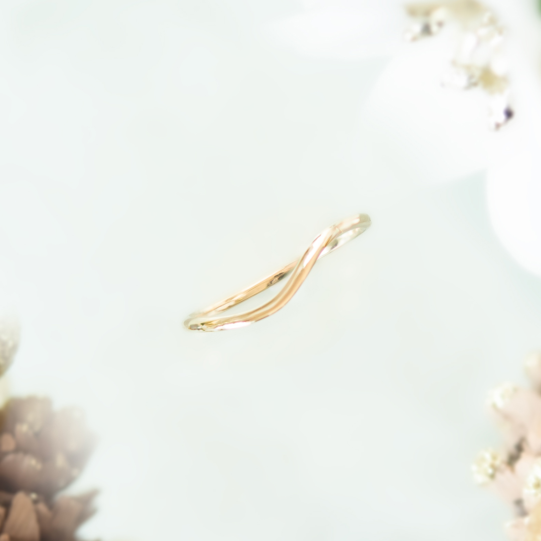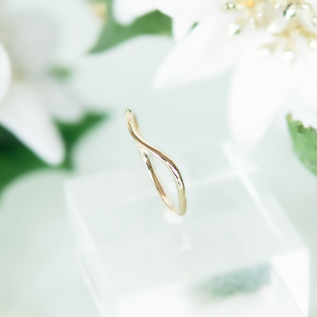 ひねりをきかせた美しい曲線が指に優しく寄り添うリング。