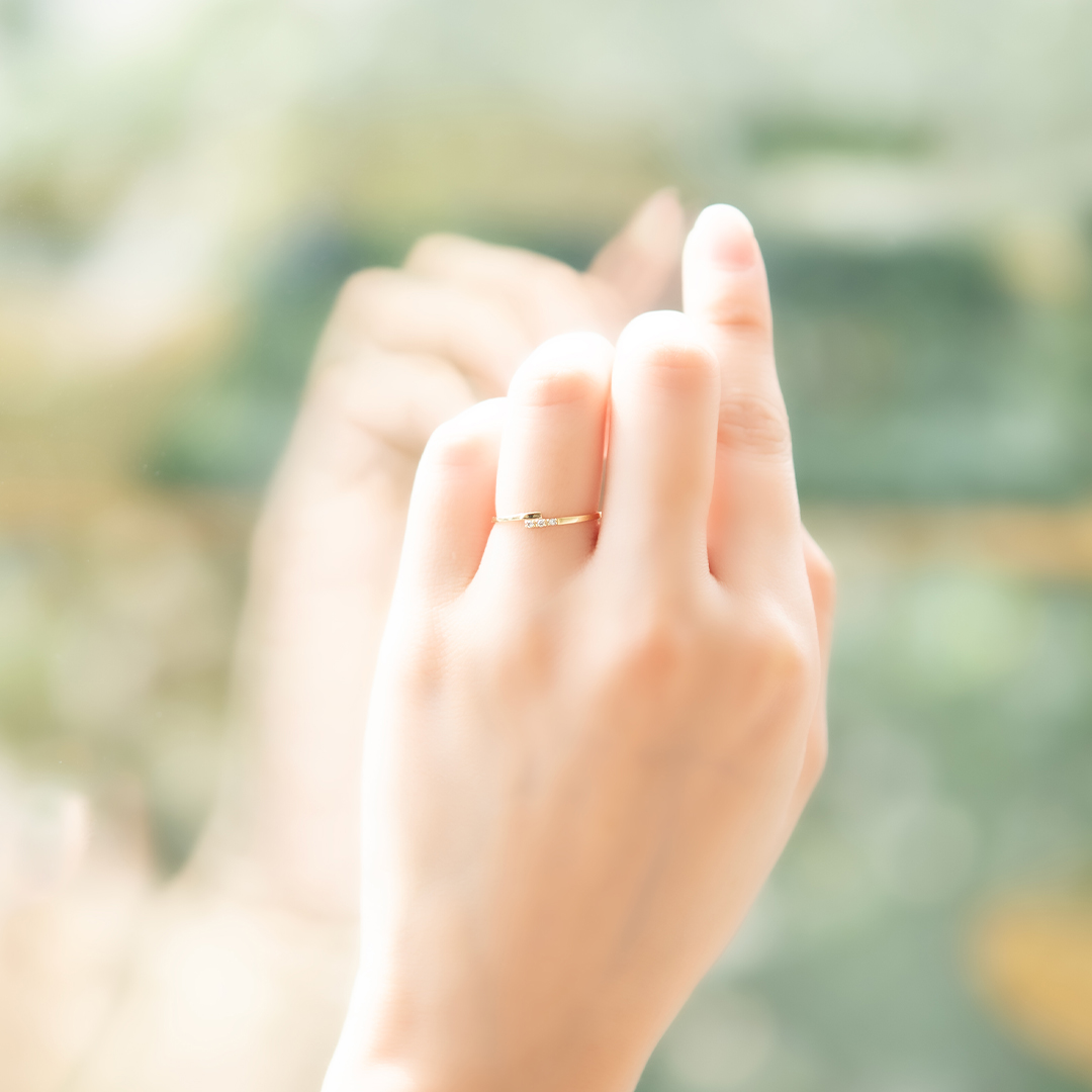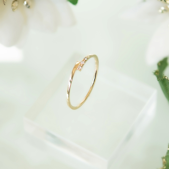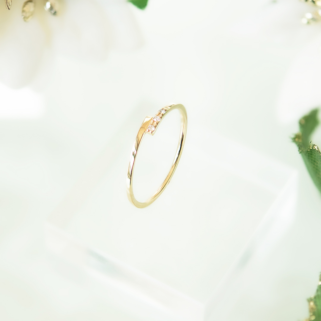 イエローゴールドのあたたかみと華奢なライン上に並んだダイヤモンドがささやかに煌めきます。