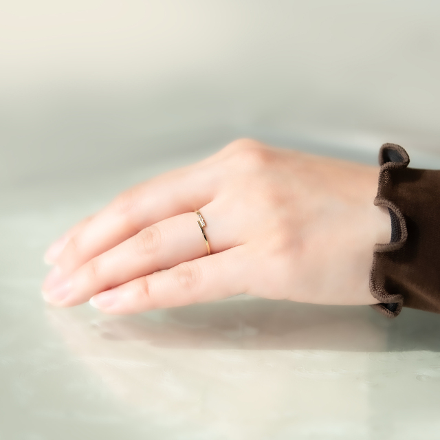 アーム部分が左右からそっと寄り添い、抱き合うようなフォルムのリング。