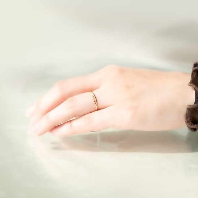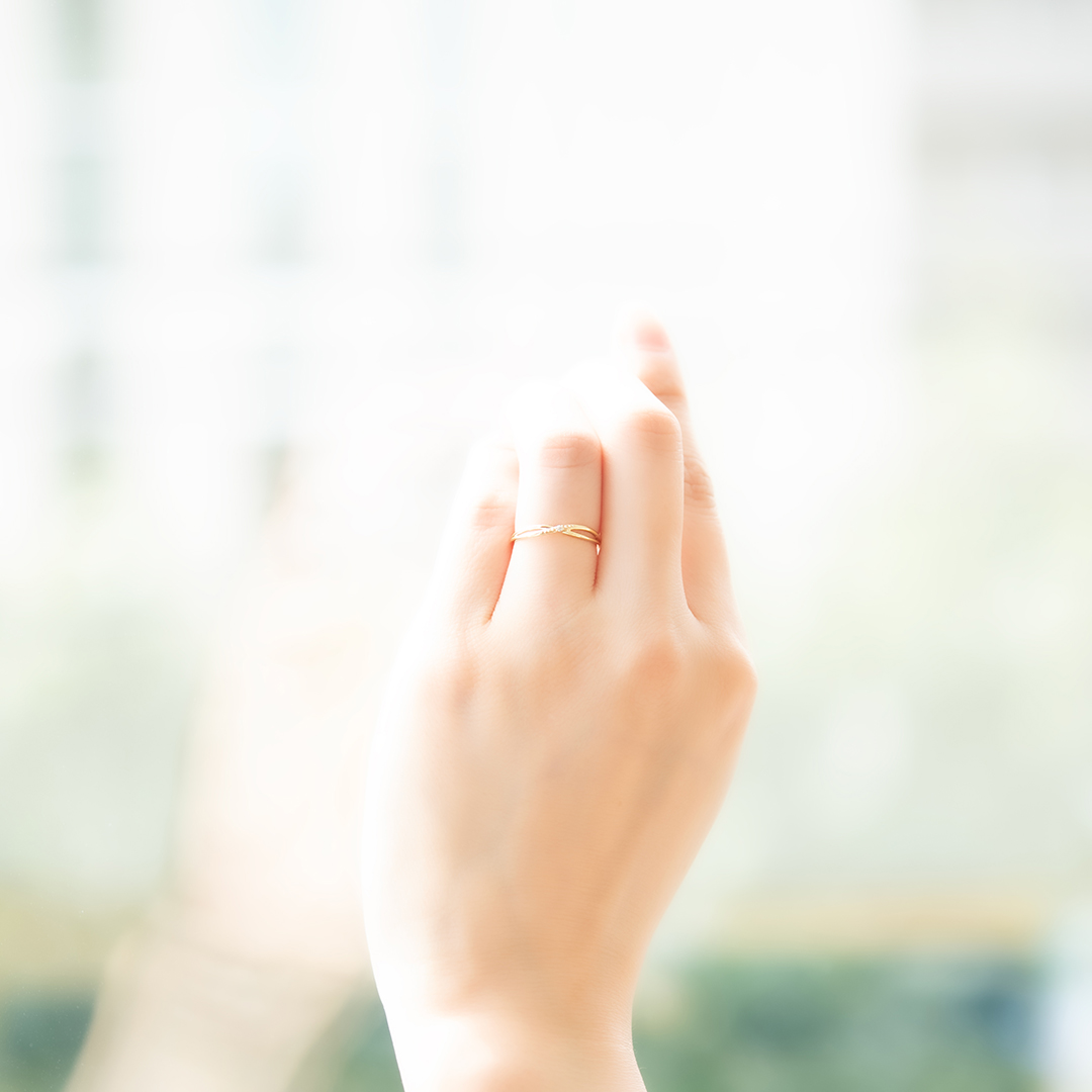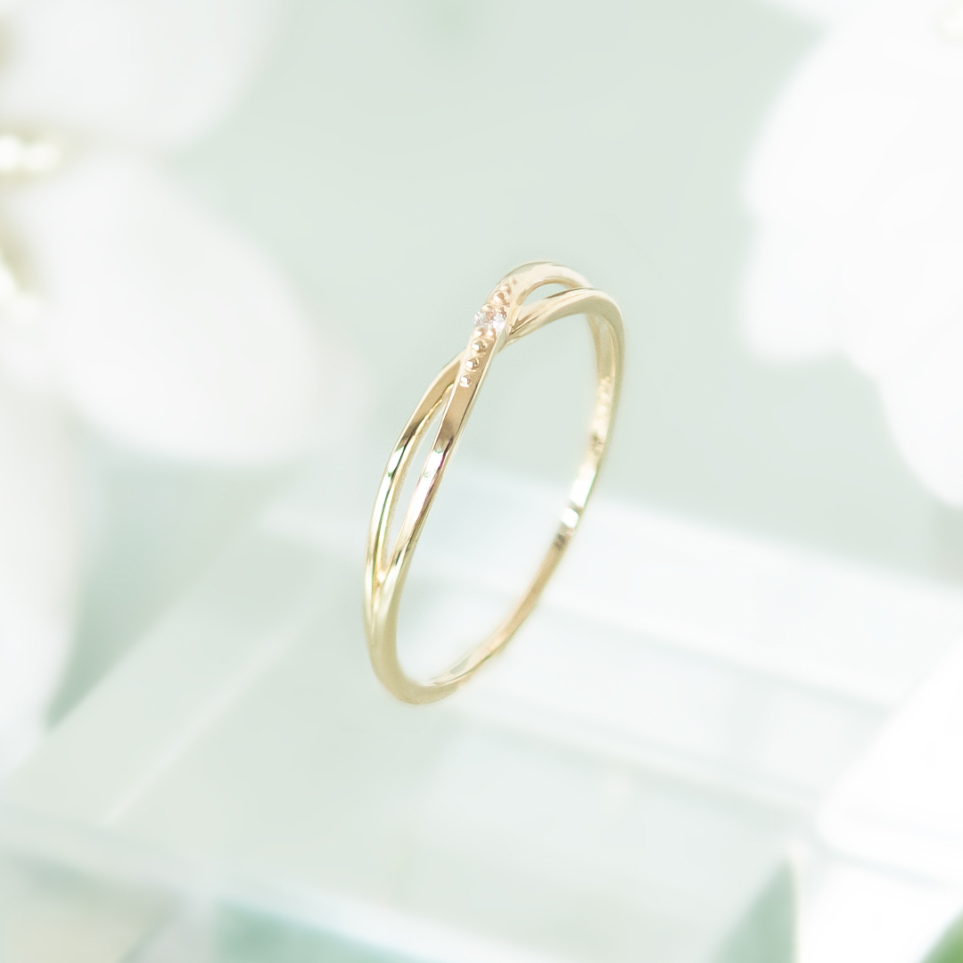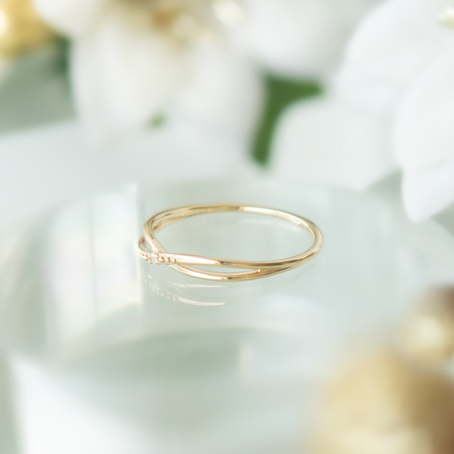 繊細なラインが、クロスするリング。