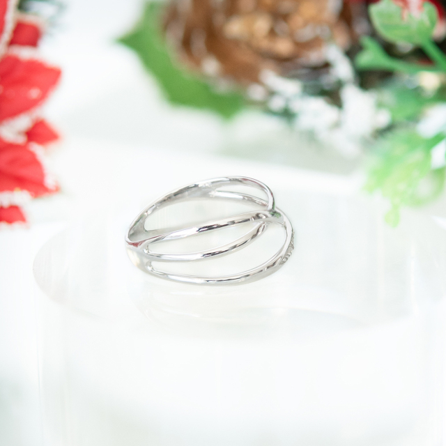 指をしなやかに包み込むような、立体感のある3本のラインが美しい上品なリング。