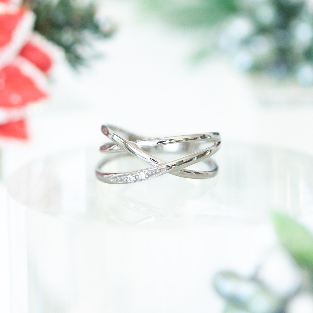 ライン上にあしらわれた2石のダイヤモンドがアクセントになり、華やかさをプラスしています。
