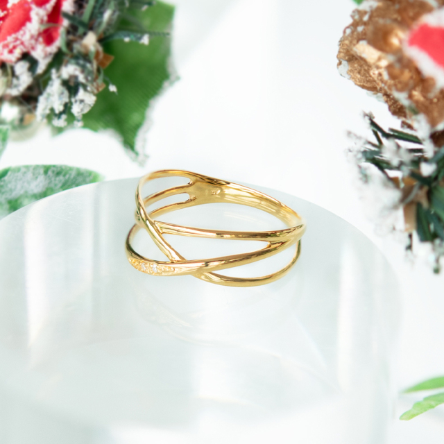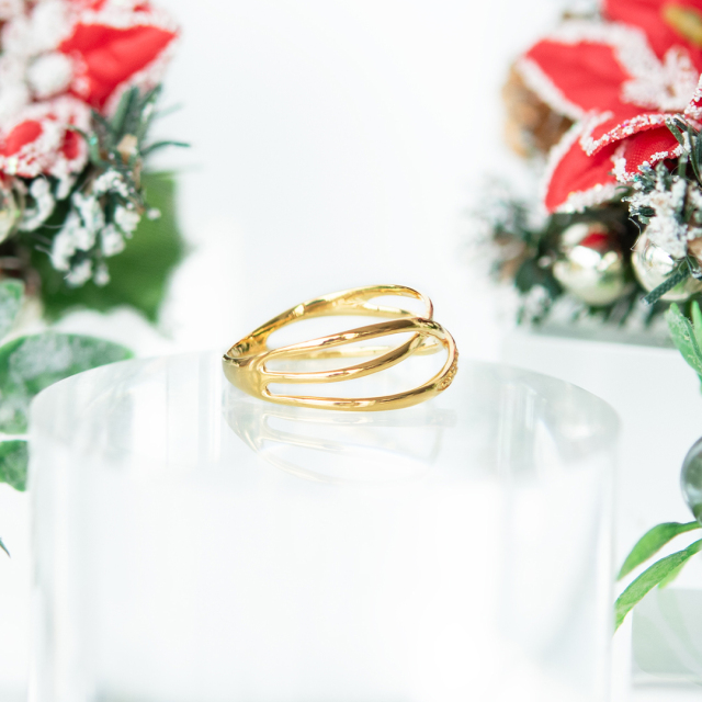 指をしなやかに包み込むような、立体感のある3本のラインが美しい上品なリング。
