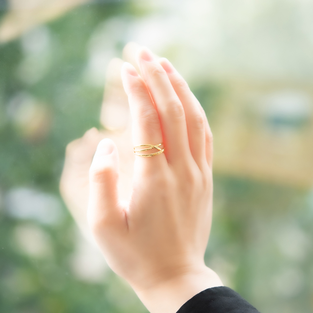 程よいボリューム感と立体感のあるデザインは、洗練された印象かつ指を綺麗に見せてくれる効果があります。