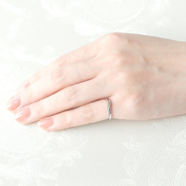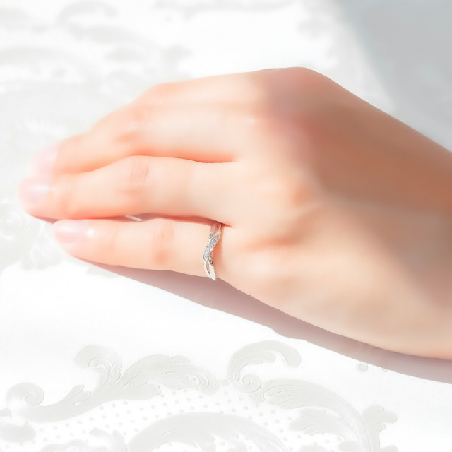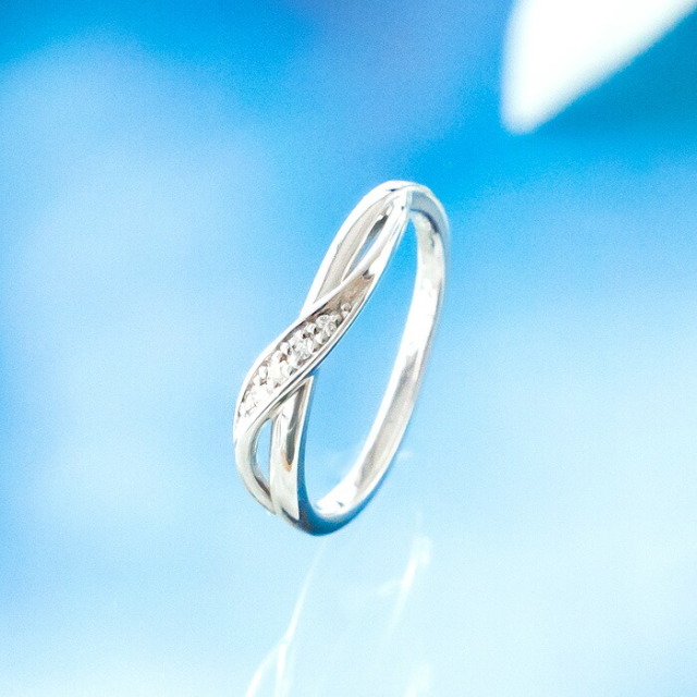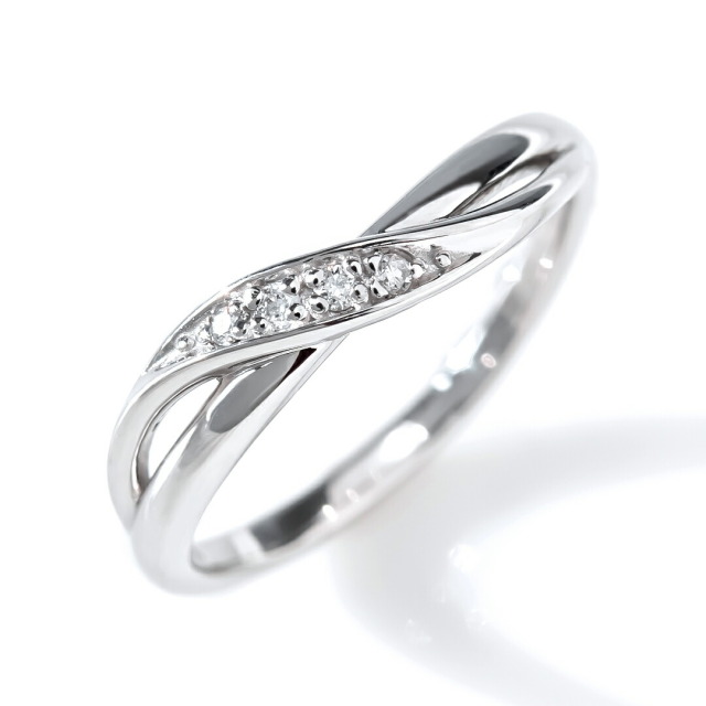 流れるようななめらかなウェーブラインには4石のダイヤモンドをセッティング。