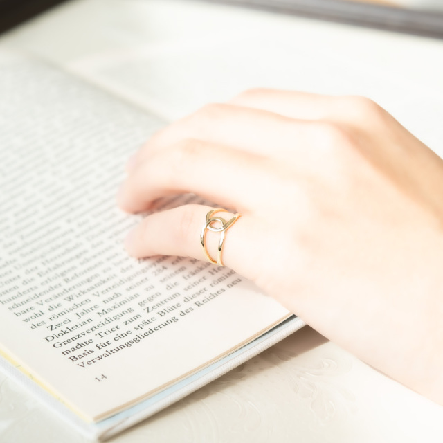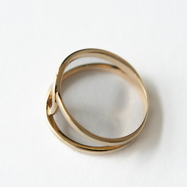 柔らかな2つの曲線がクロスした立体的なデザインのピンキーリング。