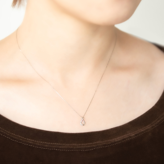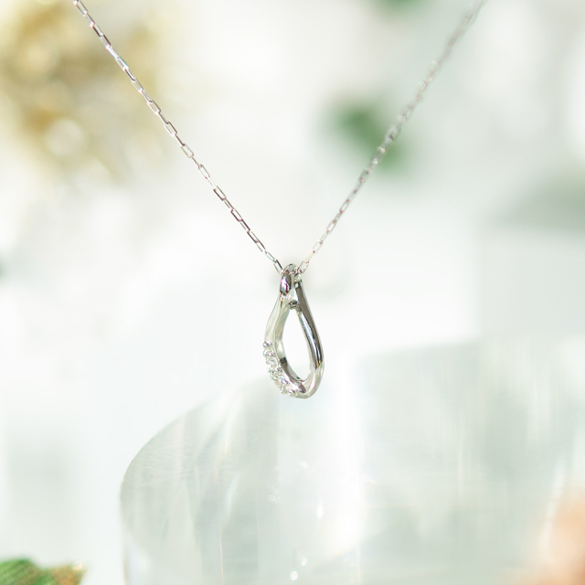 なめらかな曲線で描いたしずく型のトップが大人の品を感じさせてくれるネックレス。