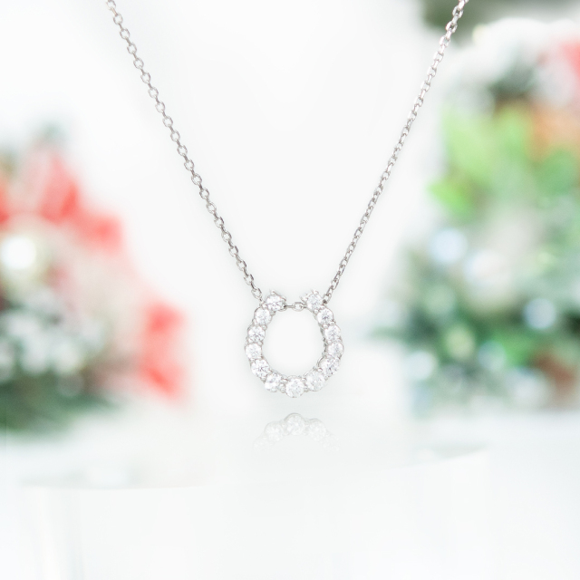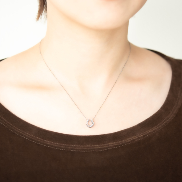 大ぶりな馬蹄モチーフが胸元で上品に輝く、存在感のあるネックレス。