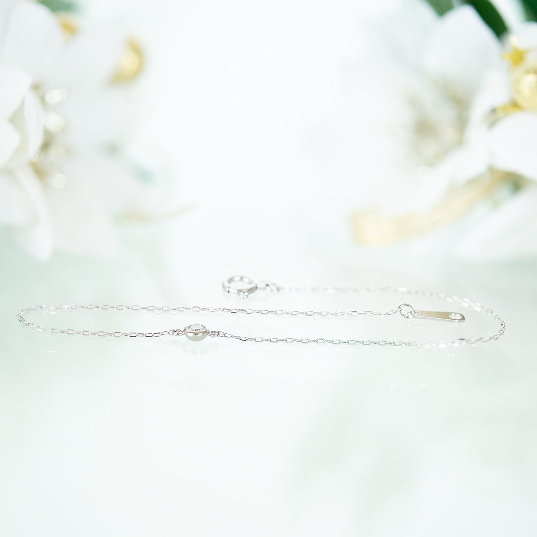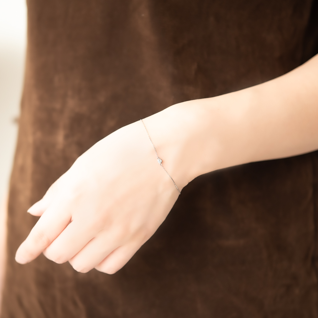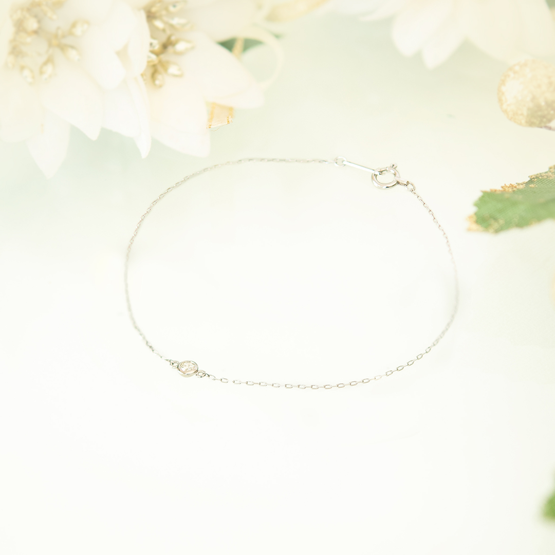一粒のダイヤモンドをあしらった、シンプルで上品なブレスレット。