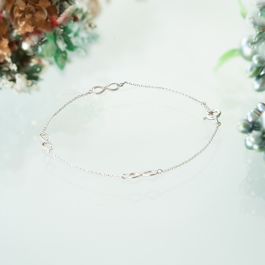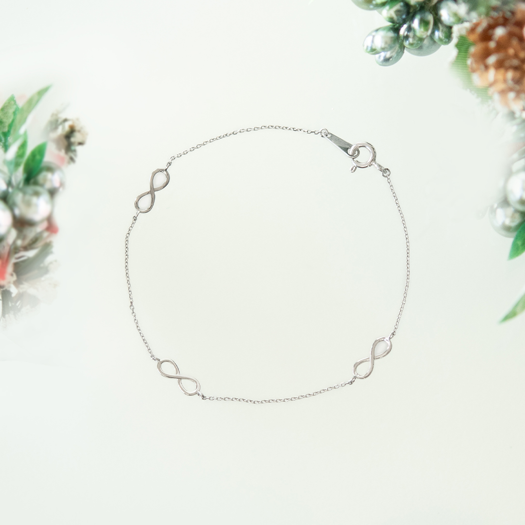 永遠や無限を表す∞(インフィニティ)モチーフが、手元にさりげない輝きを添える上品なブレスレット。