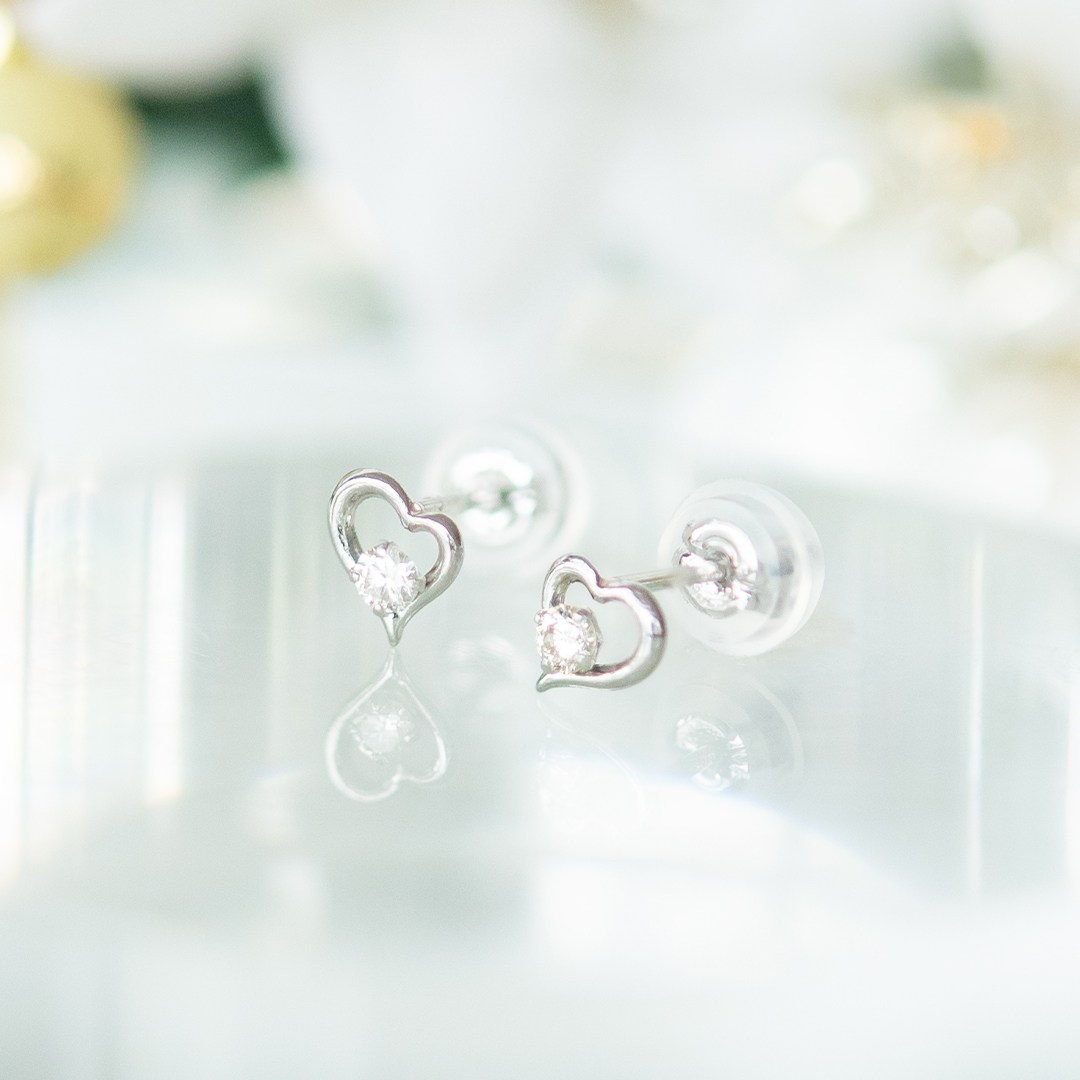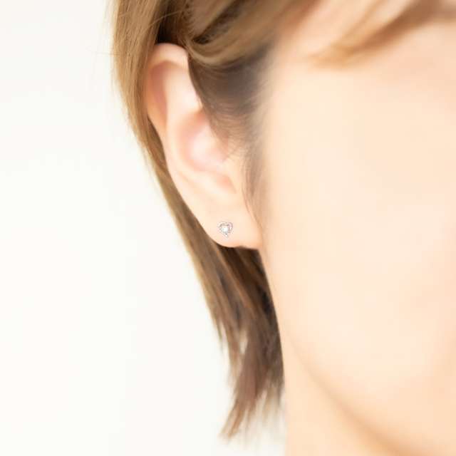 耳元に寄り添う繊細で愛らしいオープンハートのピアス。