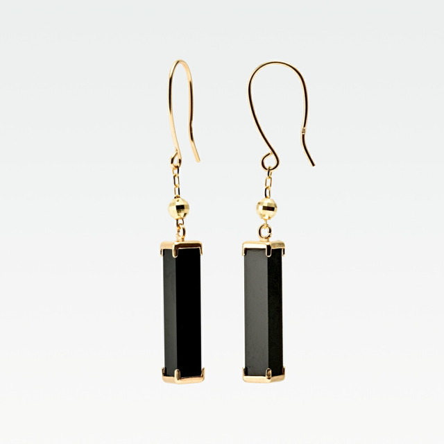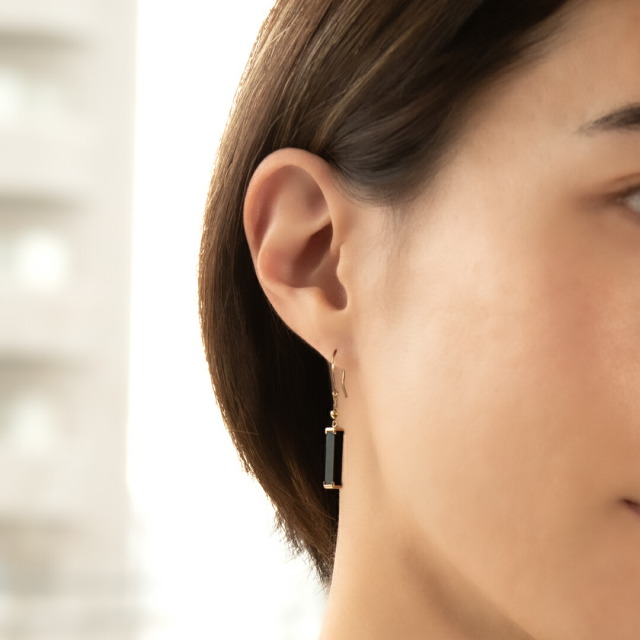 深い漆黒のオニキスをスクエアにカットし、スタイリッシュなピアスに仕上げました。