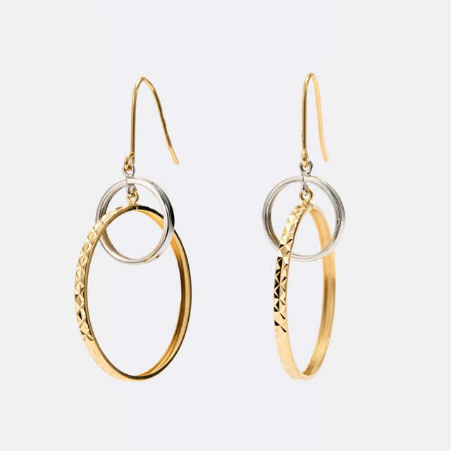 ホワイトゴールドとイエローゴールドのコンビカラーが耳元をお洒落に演出。