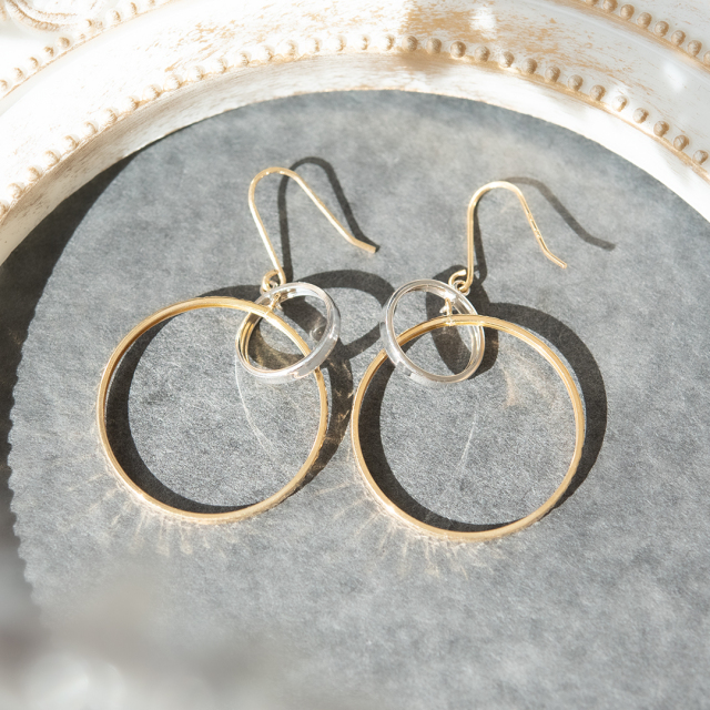 大きさの異なるフープを重ね合わせた、存在感抜群のデザインピアスが登場。