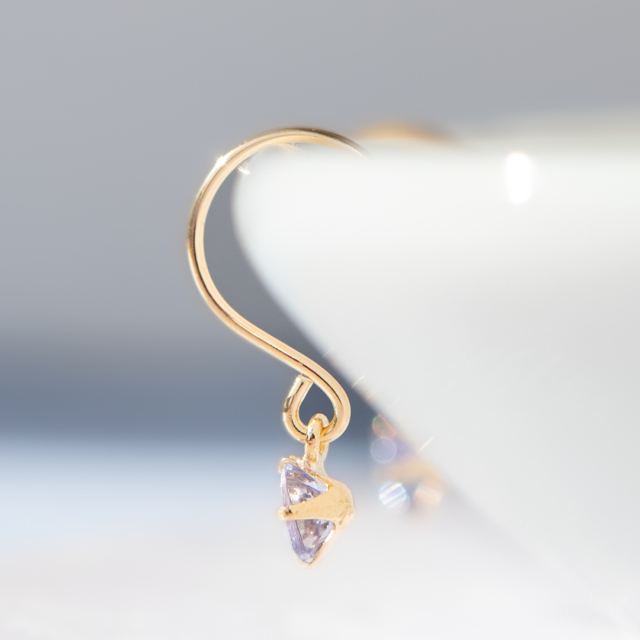 ミステリアスな雰囲気のタンザナイトが、ふとした仕草でふるふる揺れる愛らしいピアスです。