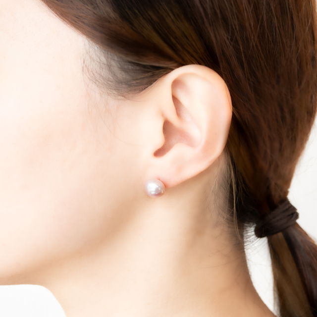 前からも後ろからも綺麗でおしゃれな、ほんのり優しい紫色の淡水パールを使ったキャッチです。