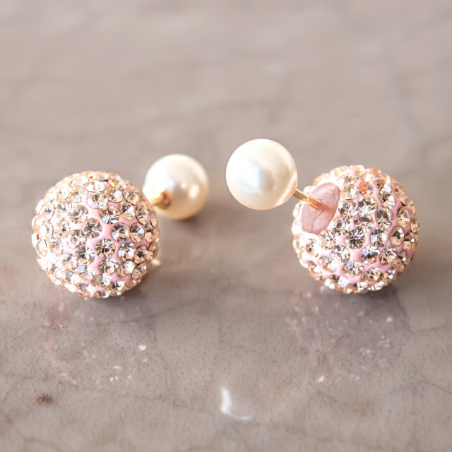 キラキラのチェコガラスをびっしりと敷き詰めた、前からも後ろからも綺麗に見えるキャッチです。