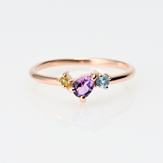 | 【素材】 | K10ピンクゴールド/アメジスト/ブルートパーズ/ペリドット |