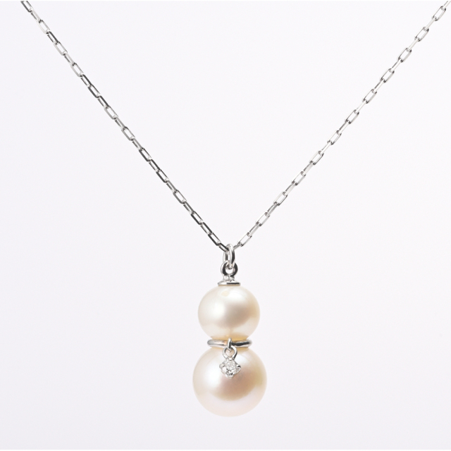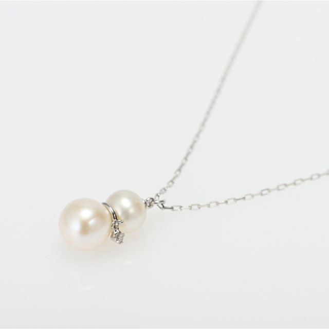 | 【チェーン】 | 0.2mmアズキチェーン45cm(41cm部分にアジャスター管あり)※トップ取り外し不可 | 【素材】 | K10ホワイトゴールド/淡水パール/ダイヤモンド |