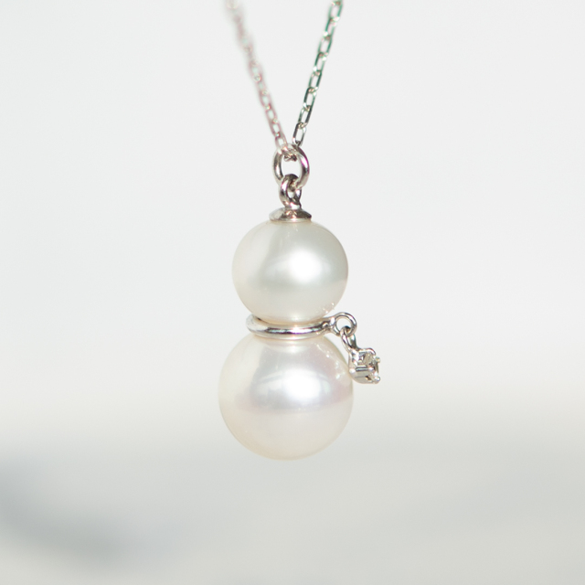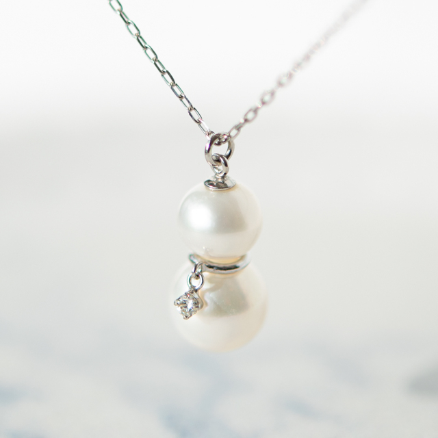 JLの雪だるまは、コロコロと丸めた雪のボディを大小に重ねた淡水パールで仕上げました。