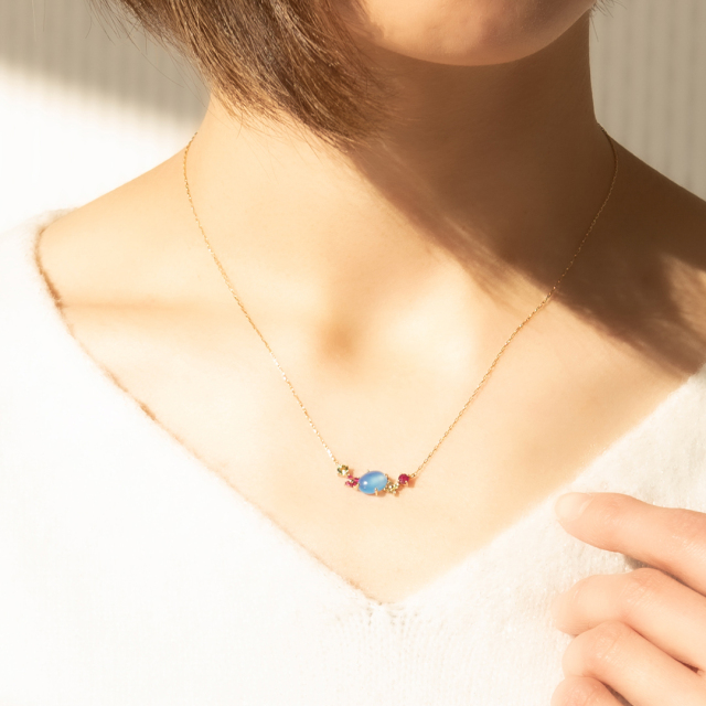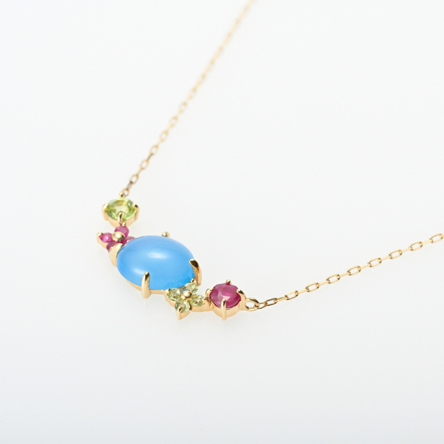 | 【素材】 | イエローゴールド(K10/K18)/シーブルーカルセドニー/ルビー/ペリドット |